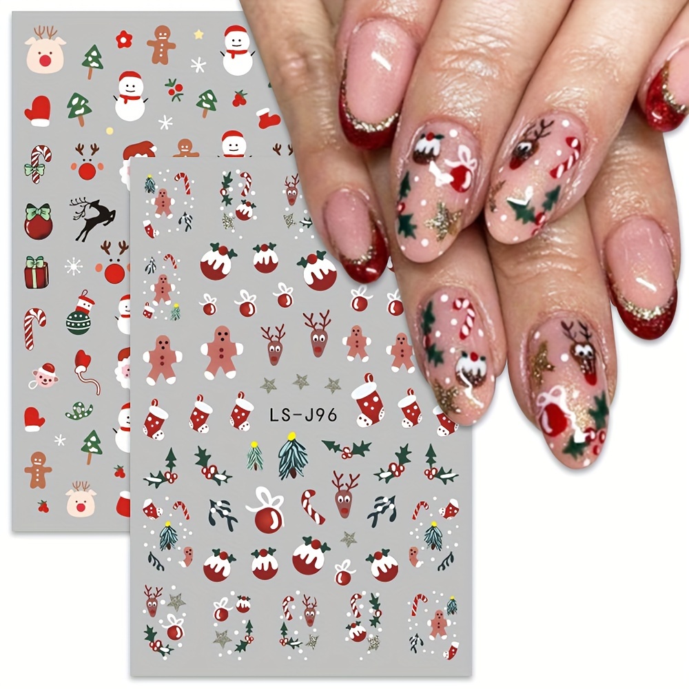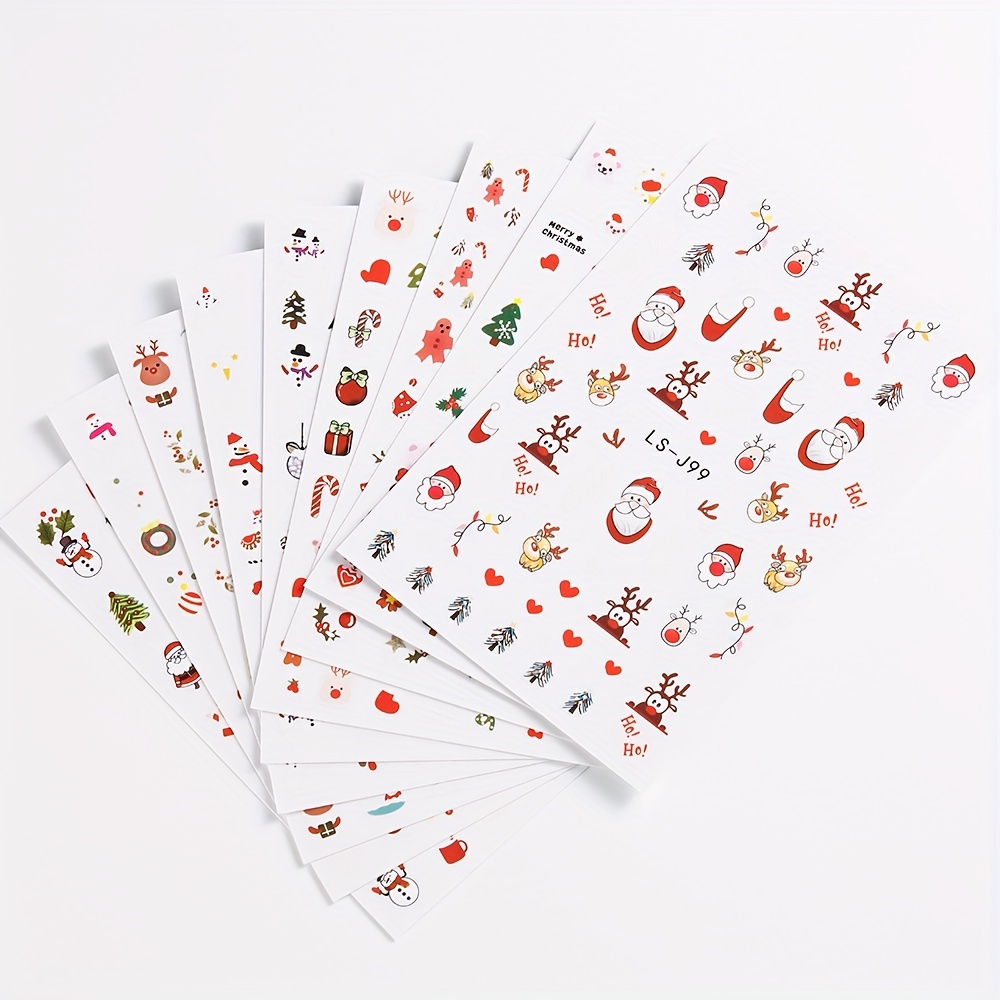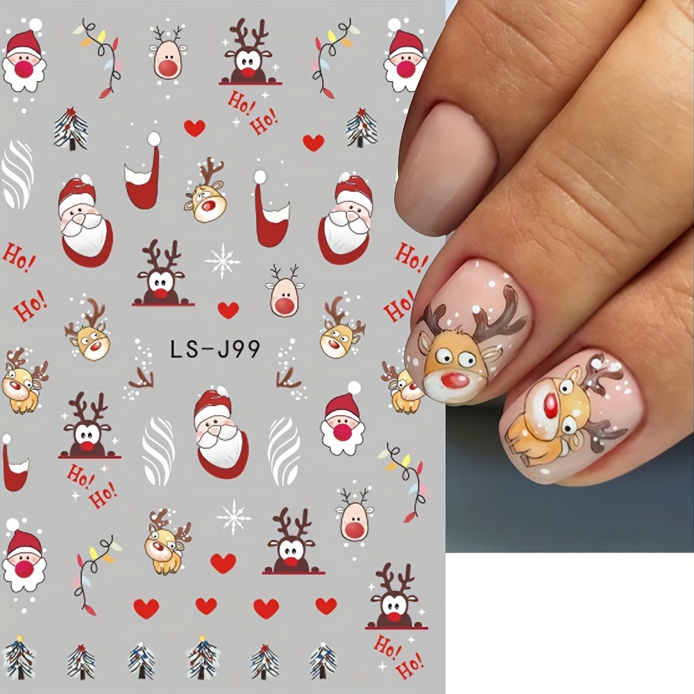 9 Sheet Christmas Nail Art Stickers, Santa Claus Snowflake Elk Christmas Tree Design Nail Art Decals, Self Adhesive Cartoon Nail Art Supplies For Women And Girls Gifts For Family