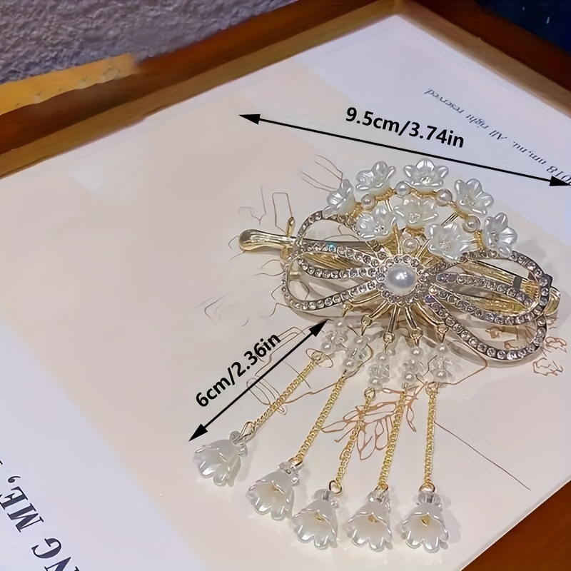 Vintage Elegant Alloy Hair Clip with Tassel and Bow Design, Single Piece Floral Hairpin with Matching Decorative Accessory