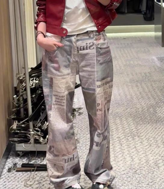 Pink Hip Pop Star Print Embroidery Boyfriend Jeans