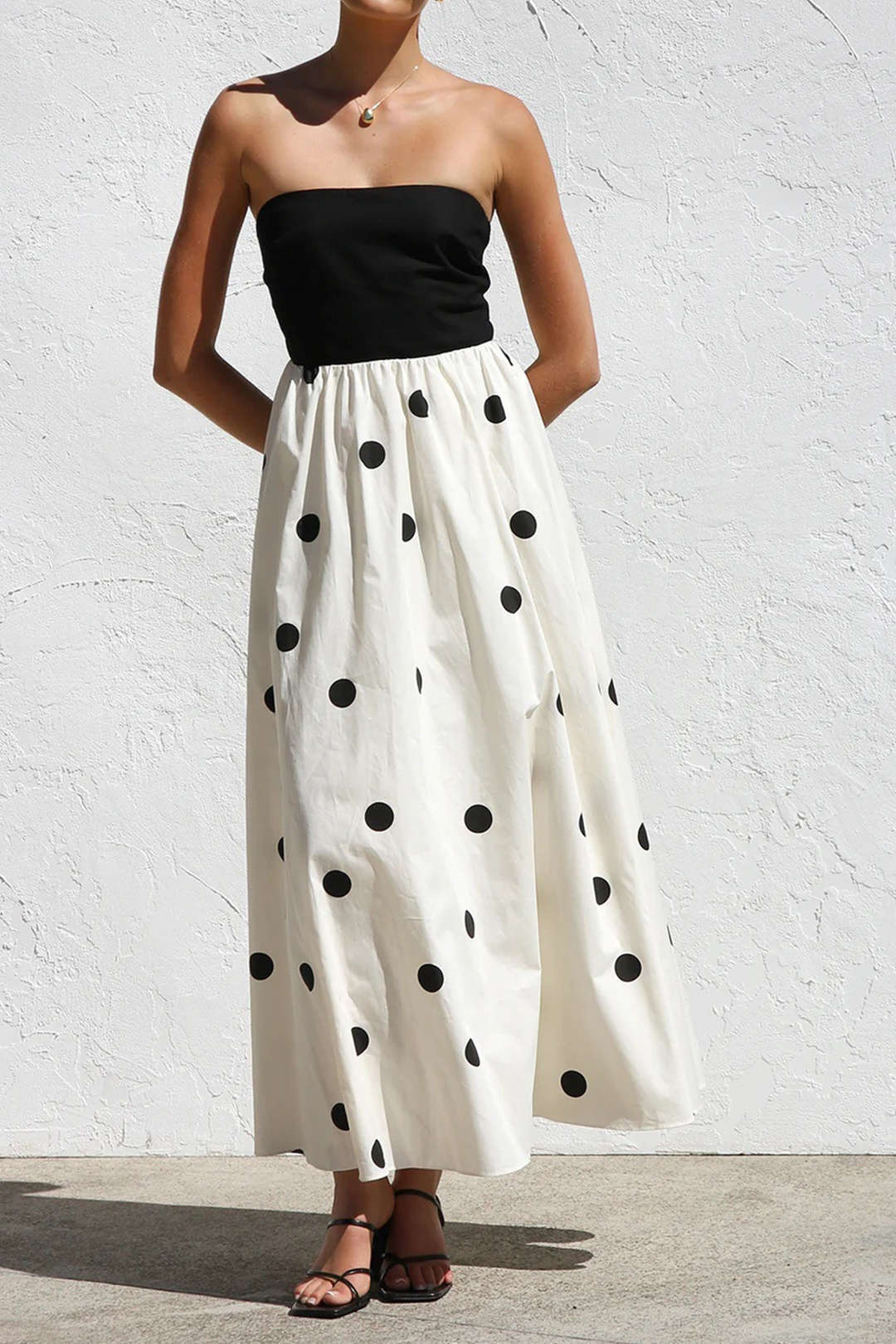Polka Dots Print Patchwork Strapless Maxi Dress