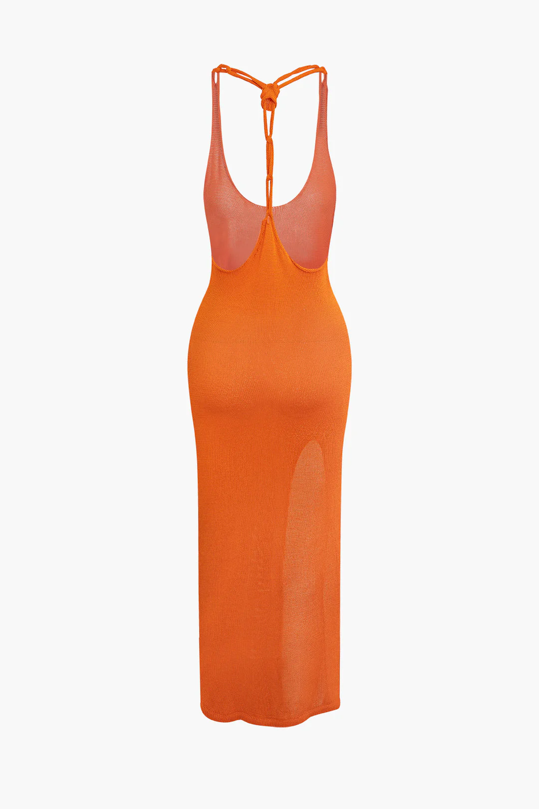 Tie Halter Backless Slit Crochet Knit Midi Dress