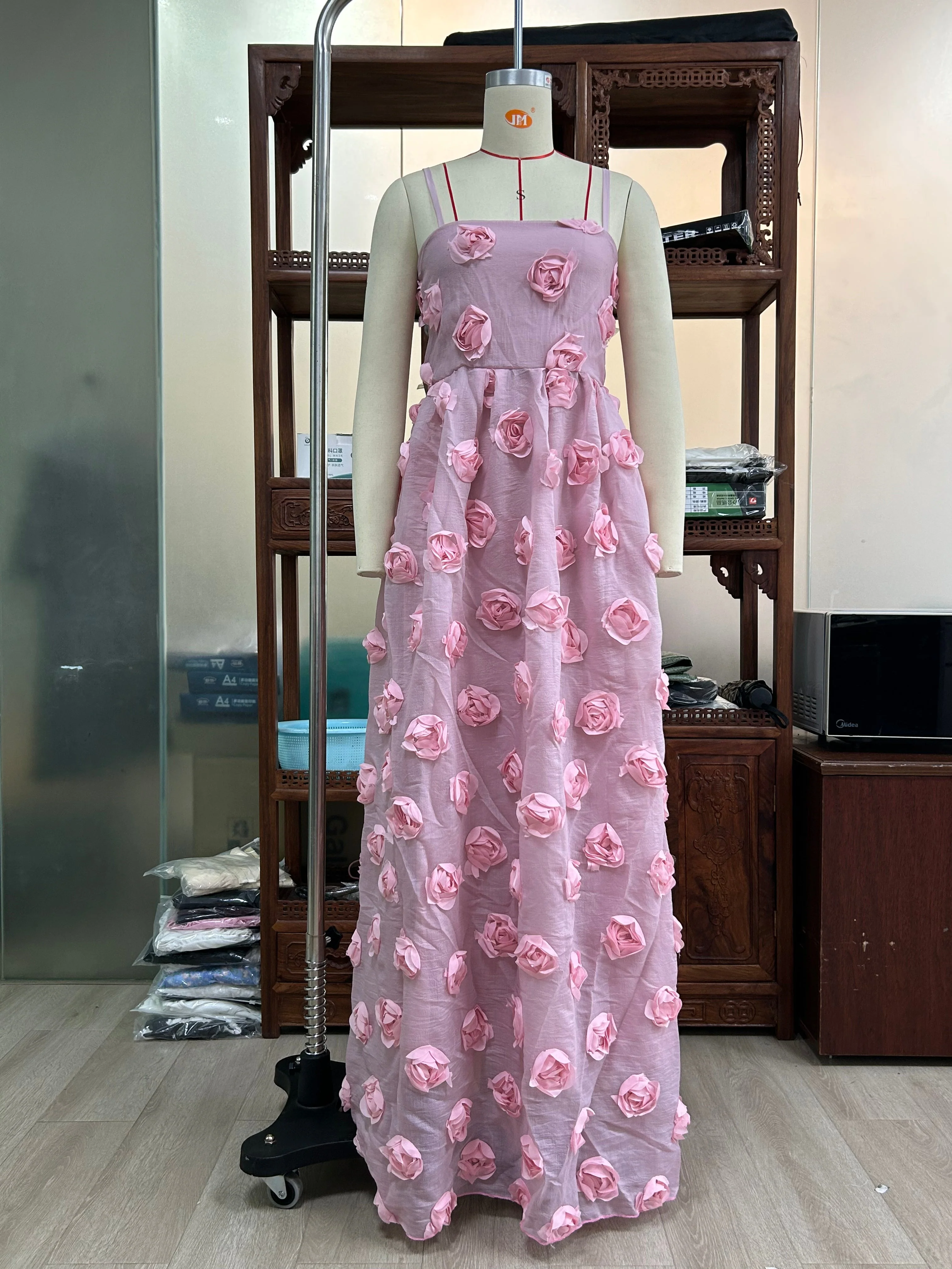 Heavy Industry Three Dimensional Rose Floral Strap Dress Backless Dress