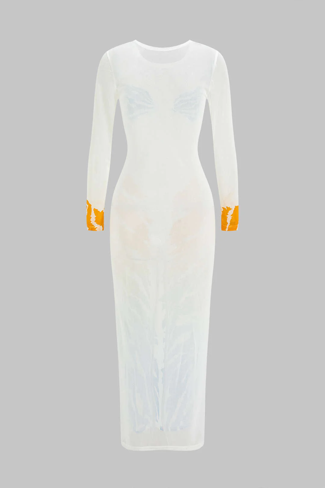 Tiger Print Mesh Sheer Round Neck Midi Dress