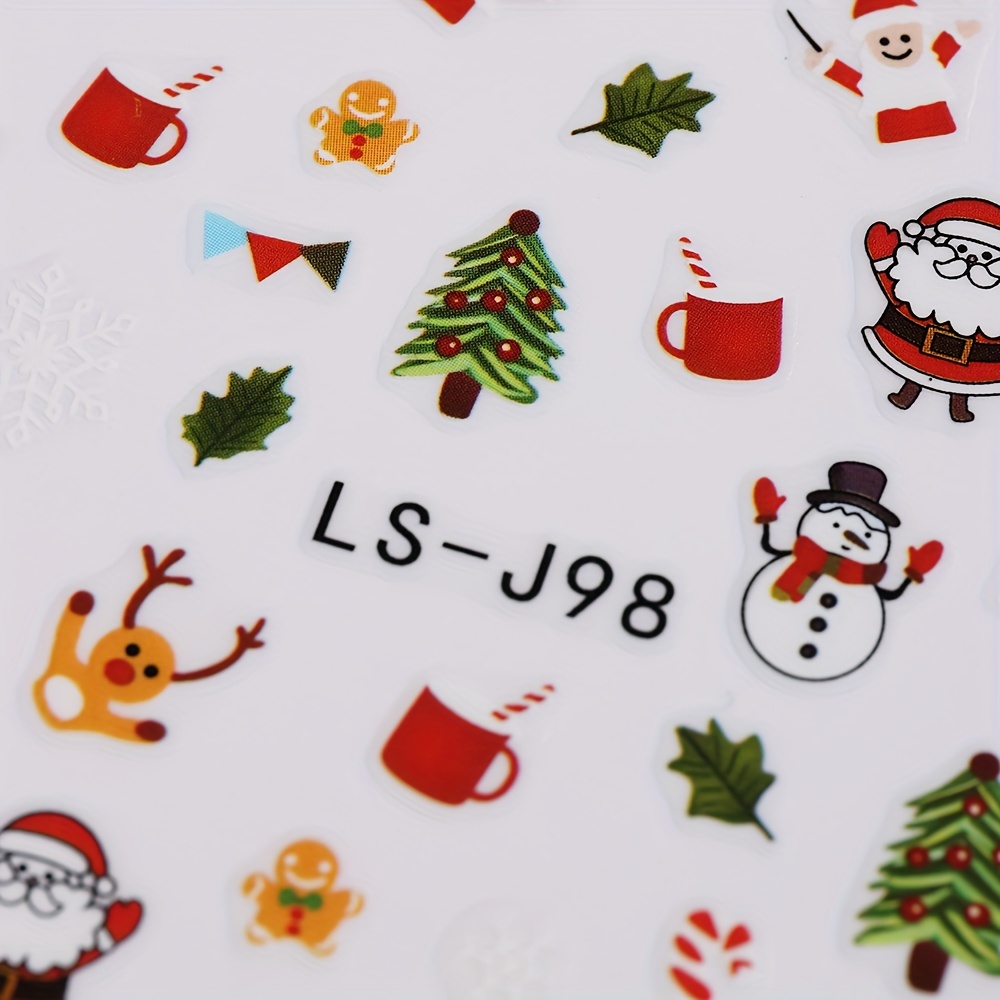 9 Sheet Christmas Nail Art Stickers, Santa Claus Snowflake Elk Christmas Tree Design Nail Art Decals, Self Adhesive Cartoon Nail Art Supplies For Women And Girls Gifts For Family