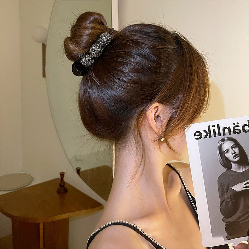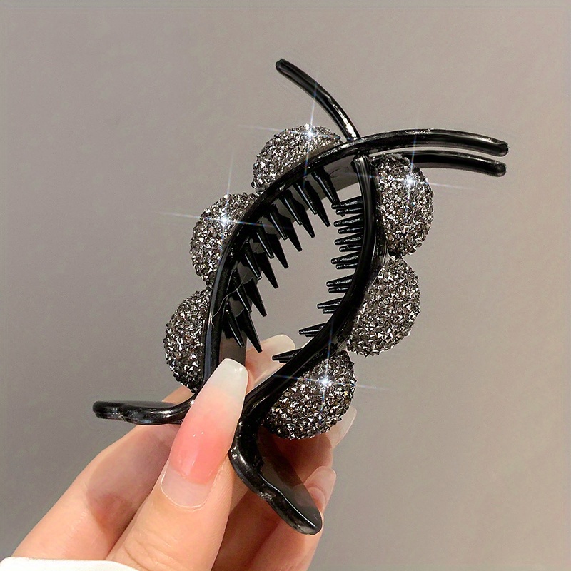 1pc Elegant Vintage Acrylic Hair Claw Clip with Rhinestone Accents, Large Sparkling Diamond Twist Ponytail Holder, Princess Style Hair Accessory for Women