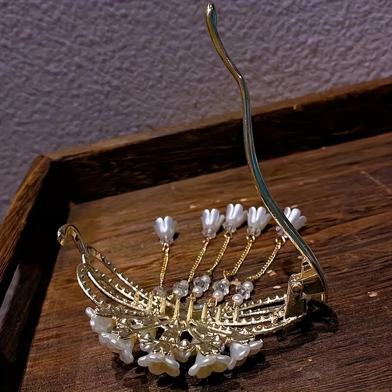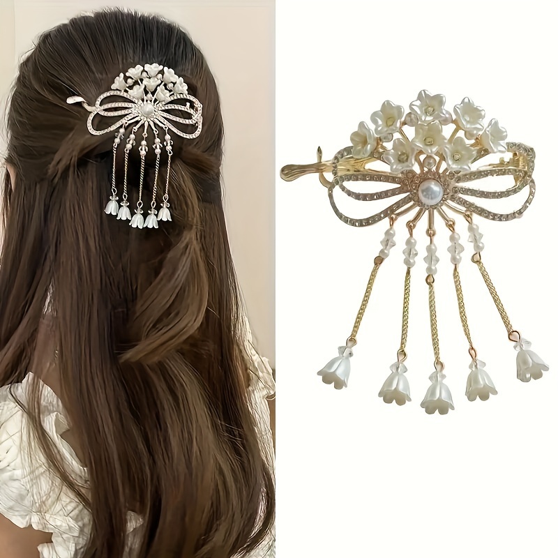 Vintage Elegant Alloy Hair Clip with Tassel and Bow Design, Single Piece Floral Hairpin with Matching Decorative Accessory