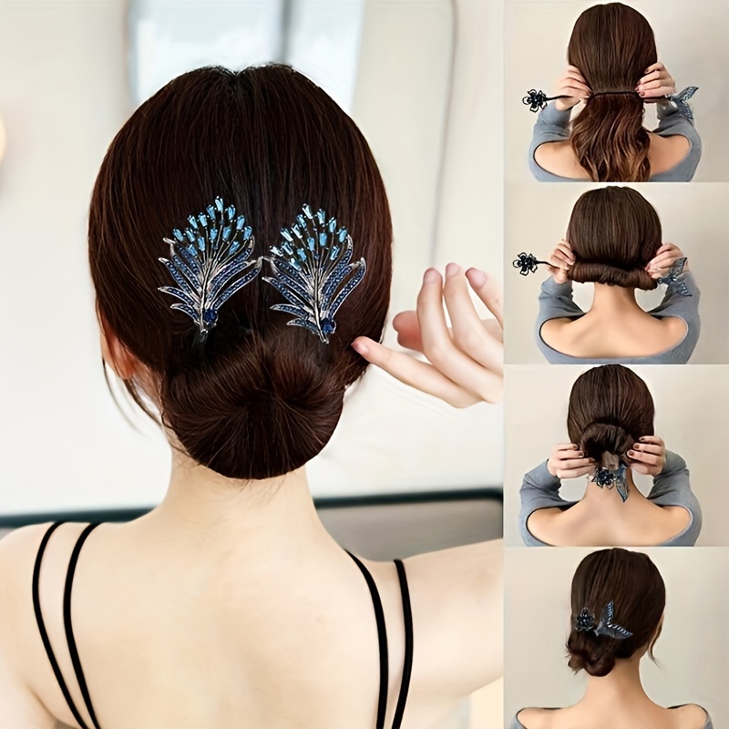 Elegant Mermaid-Inspired Handcrafted Feather Hair Bun Maker - Alloy, Non-Slip Ponytail Holder & Updo Styling Tool for Women and Girls, Perfect for Parties & Weddings