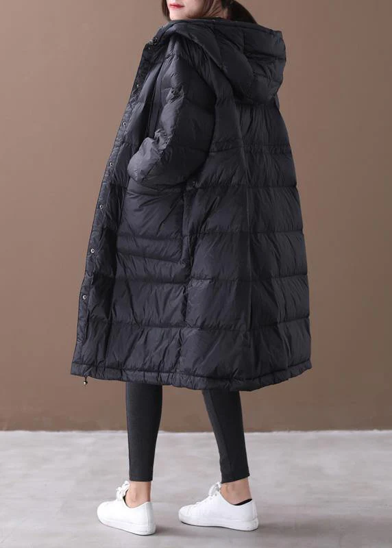 New plus size winter jacket black hooded zippered duck down coat