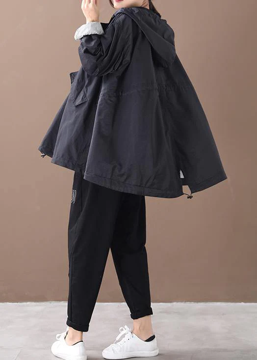 Simple black Fine tunics for women Neckline hooded zippered women coats