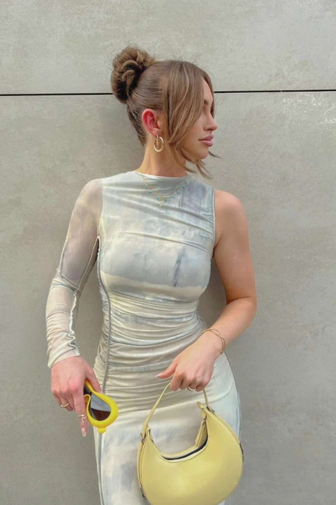 Rhinestone Decor Halter Neck One Shoulder Maxi Dress