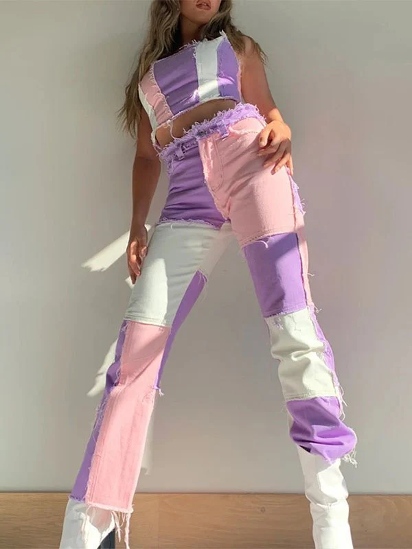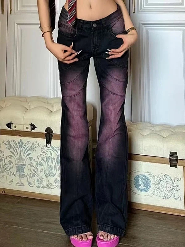 Ombre Purple Y2K Low Waist Slim Flare Jeans