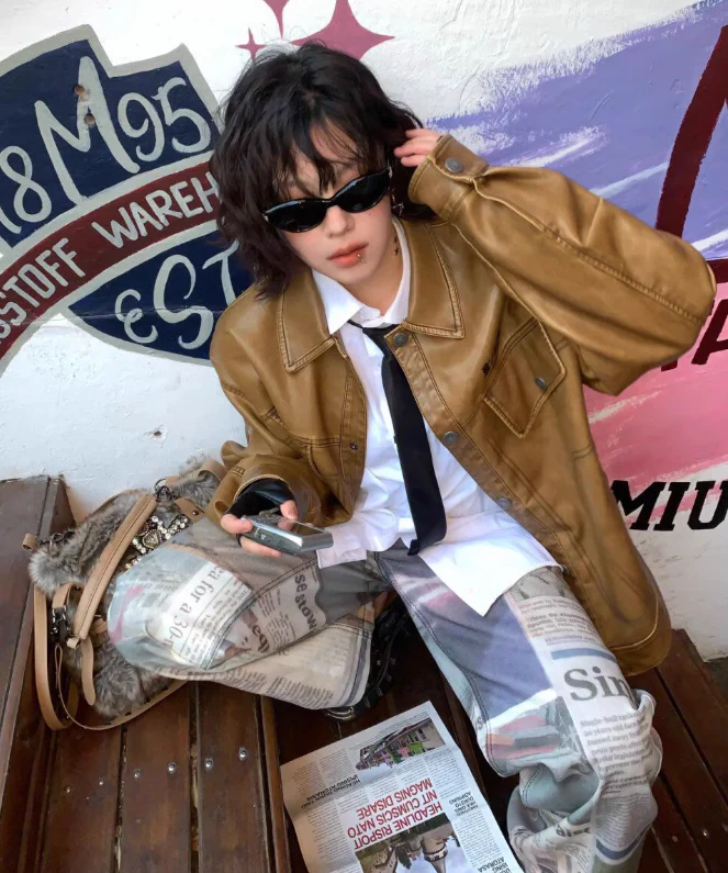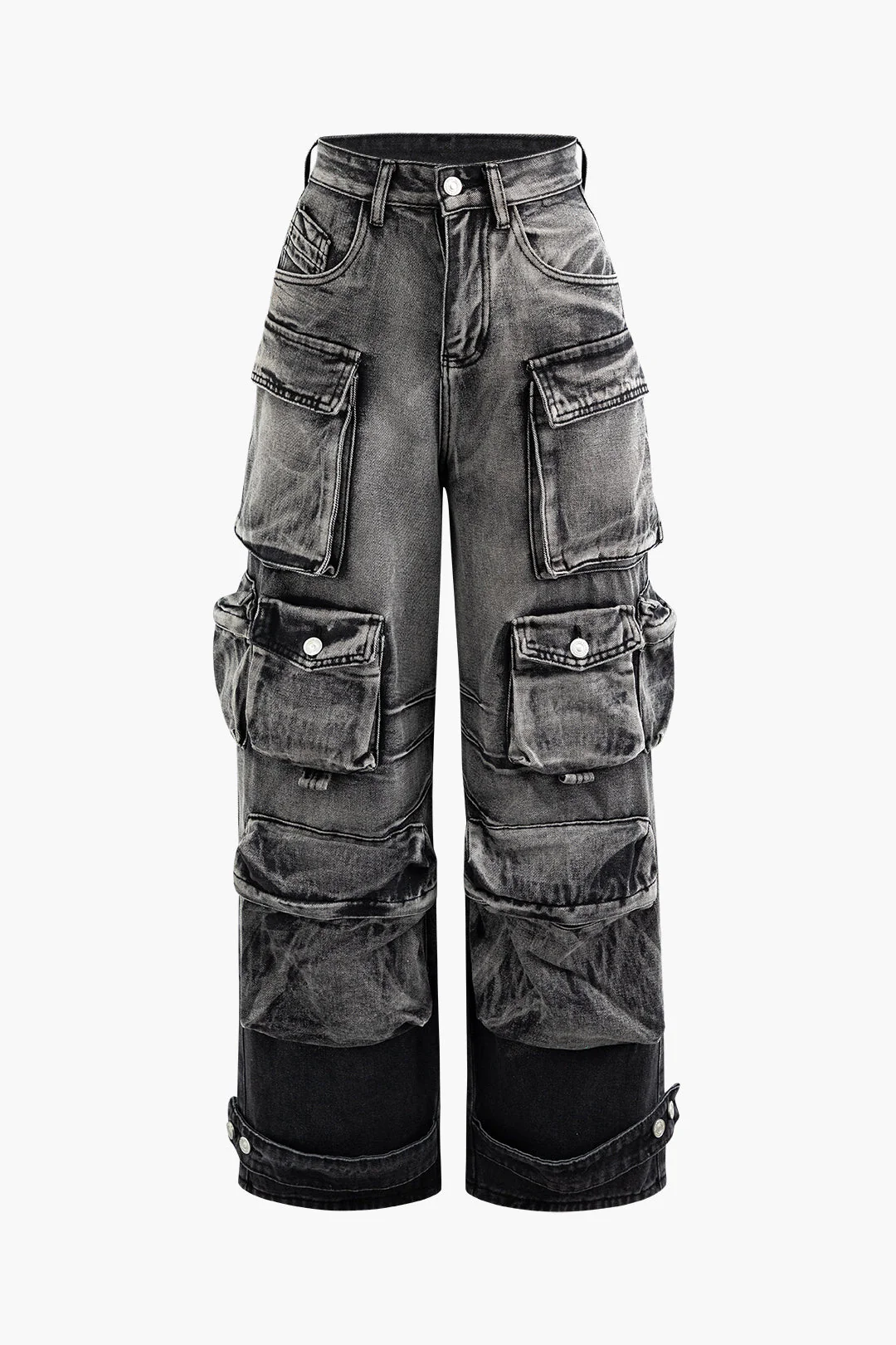 Ombre Punk Wide Leg Cargo Jeans with Multi Pockets