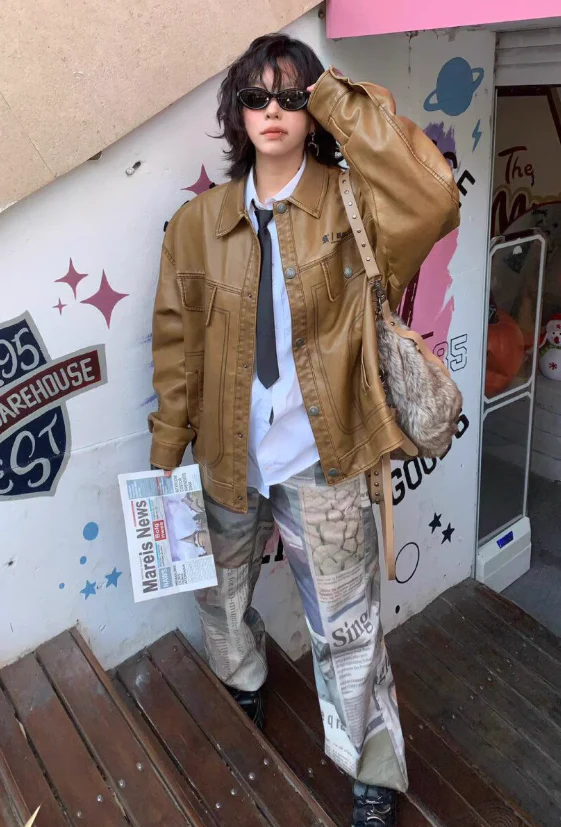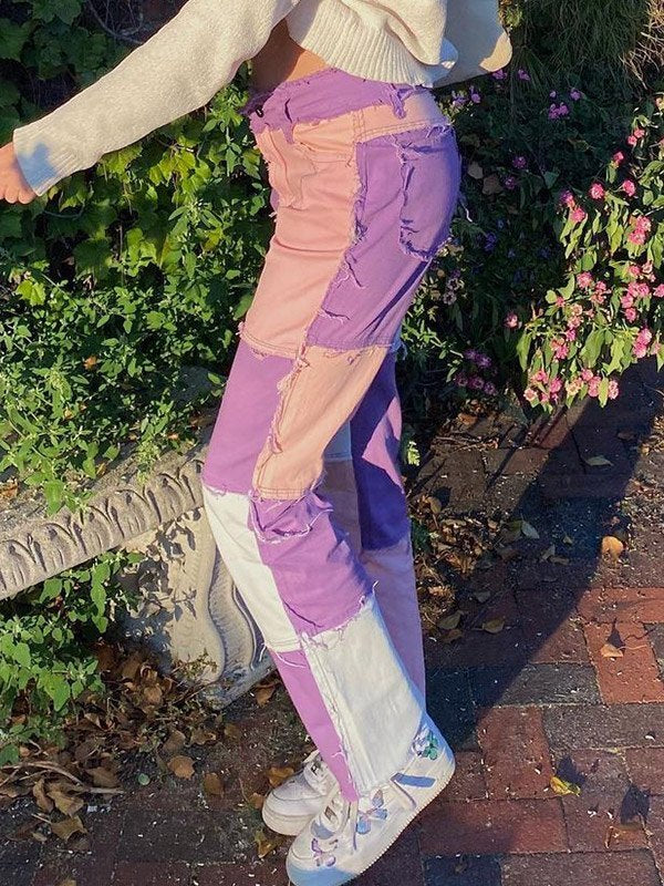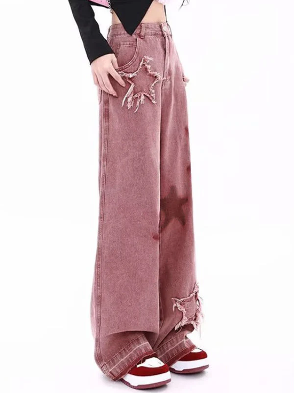Pink Hip Pop Star Print Embroidery Boyfriend Jeans