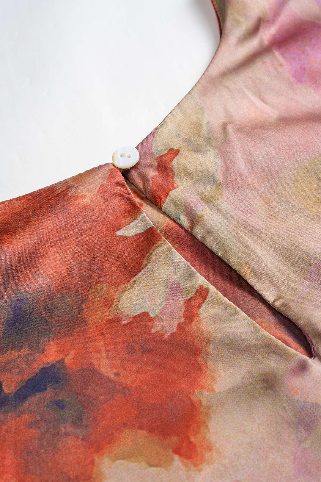 Plus Size Ombre Print Ruched Short Sleeve Midi Dress
