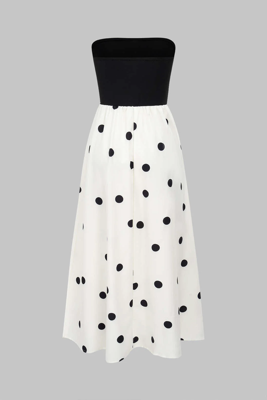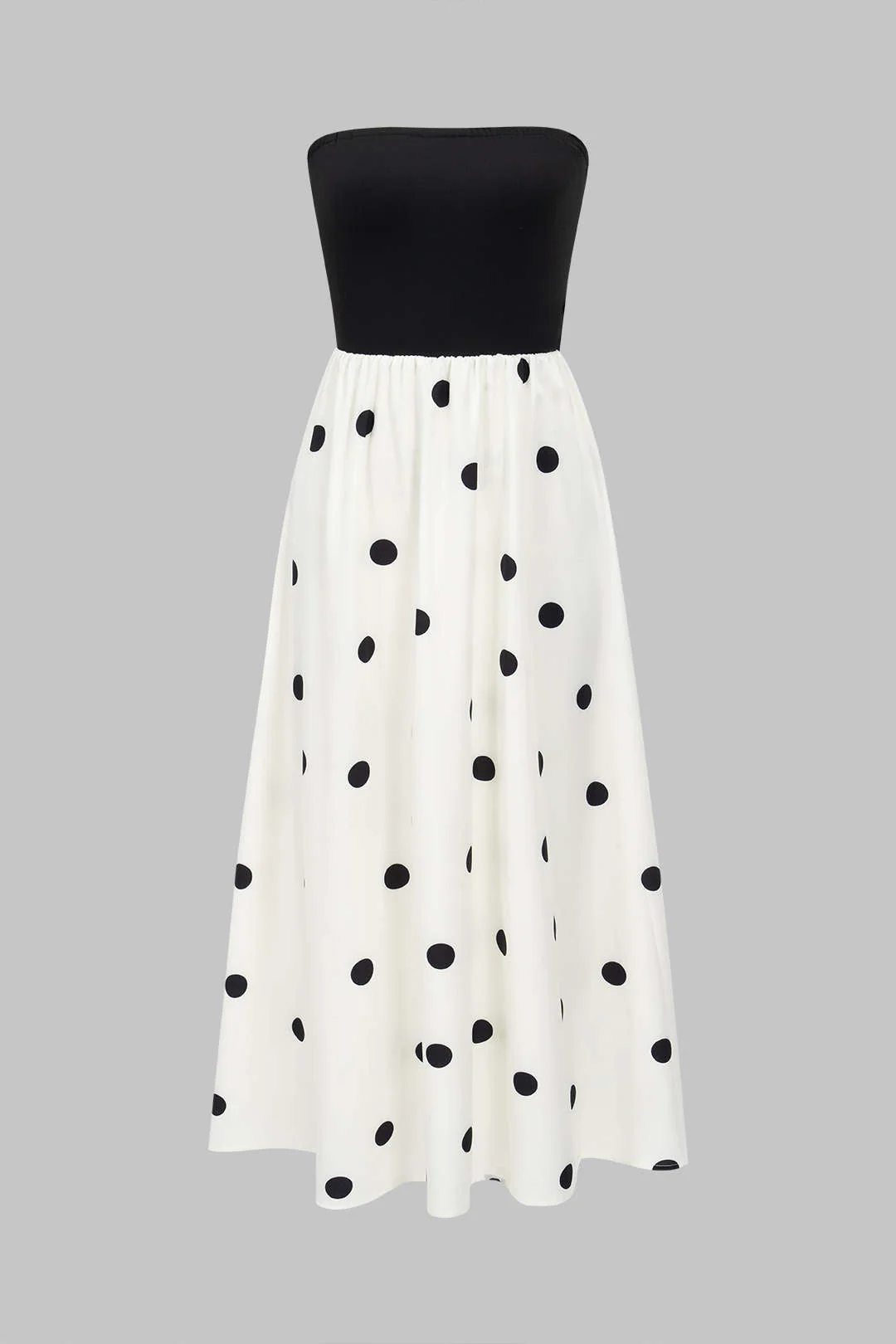 Polka Dots Print Patchwork Strapless Maxi Dress