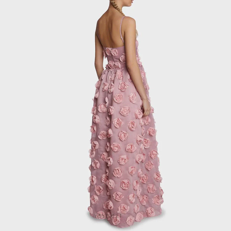 Heavy Industry Three Dimensional Rose Floral Strap Dress Backless Dress